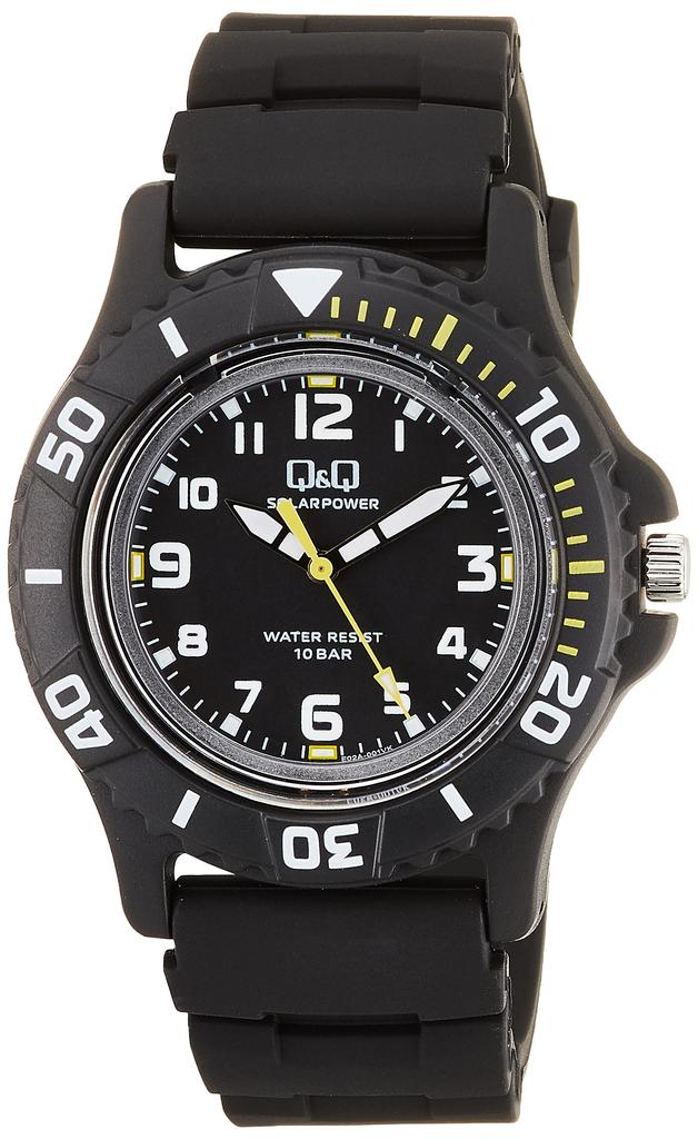Citizen Analog Solar Water Resistant to 10 Urethane Model Q&Q Men's Watch, ATM, Strap, Black, E02A-001VK