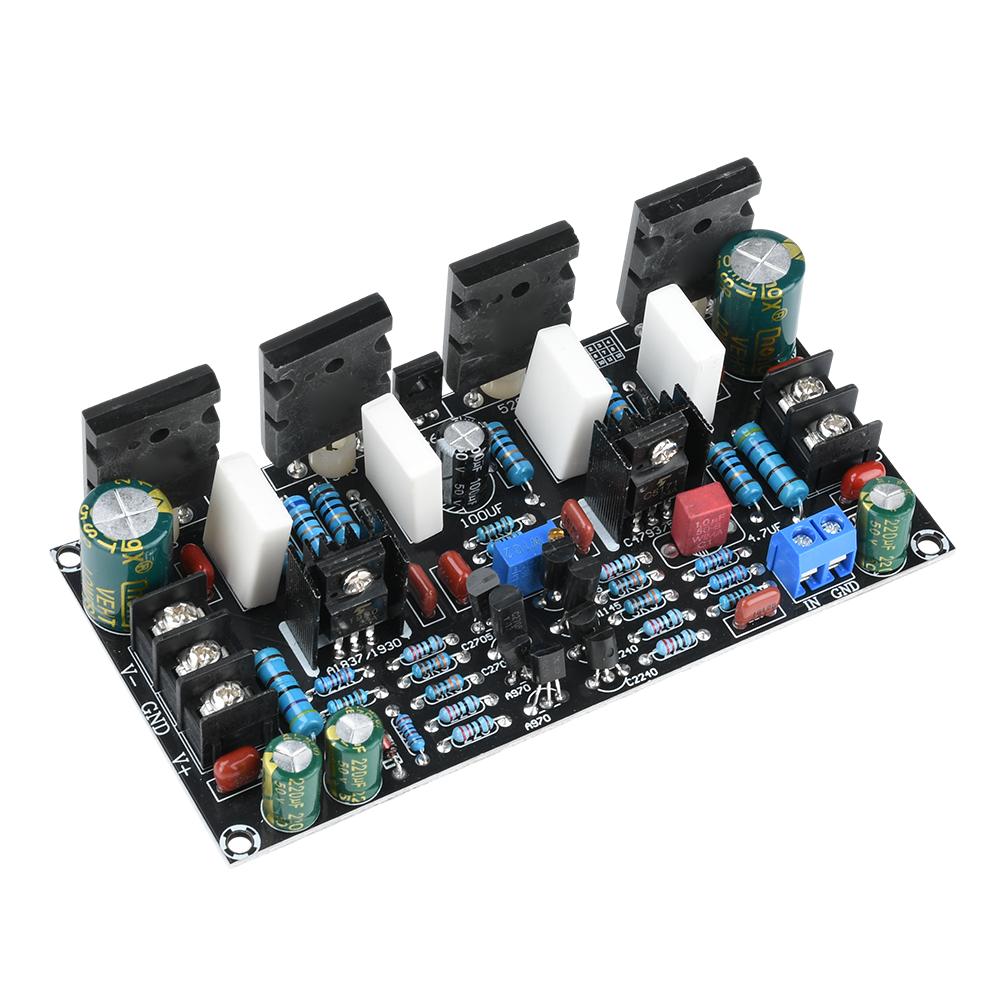 The board is a mono post amplifier board, and if dual channel is required, two amplifier boards need to be purchased for circuit design and use; A970/C2240 high-voltage audio tube dual differential circuit and A1145/C2705 voltage amplification are used to promote the use of medium power tube A1837/C4793, and the output stage uses A1943/C5200 high-power tube. Wide power supply range, DC positive and negative 20V-90V can be used, as long as sufficient power is supplied, it can easily reach 200. Good sound quality, strong driving force board, and 15 inch speaker can be pushed without pressure!