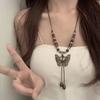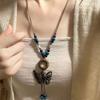 Retro pendant, ethnic style ceramic butterfly bell necklace, women's new trendy long sweater chain with accessories
