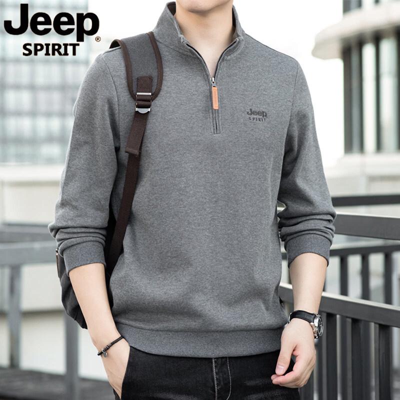 JEEP SPIRIT Men's Pure Cotton Half-Zip Long Sleeve Tee