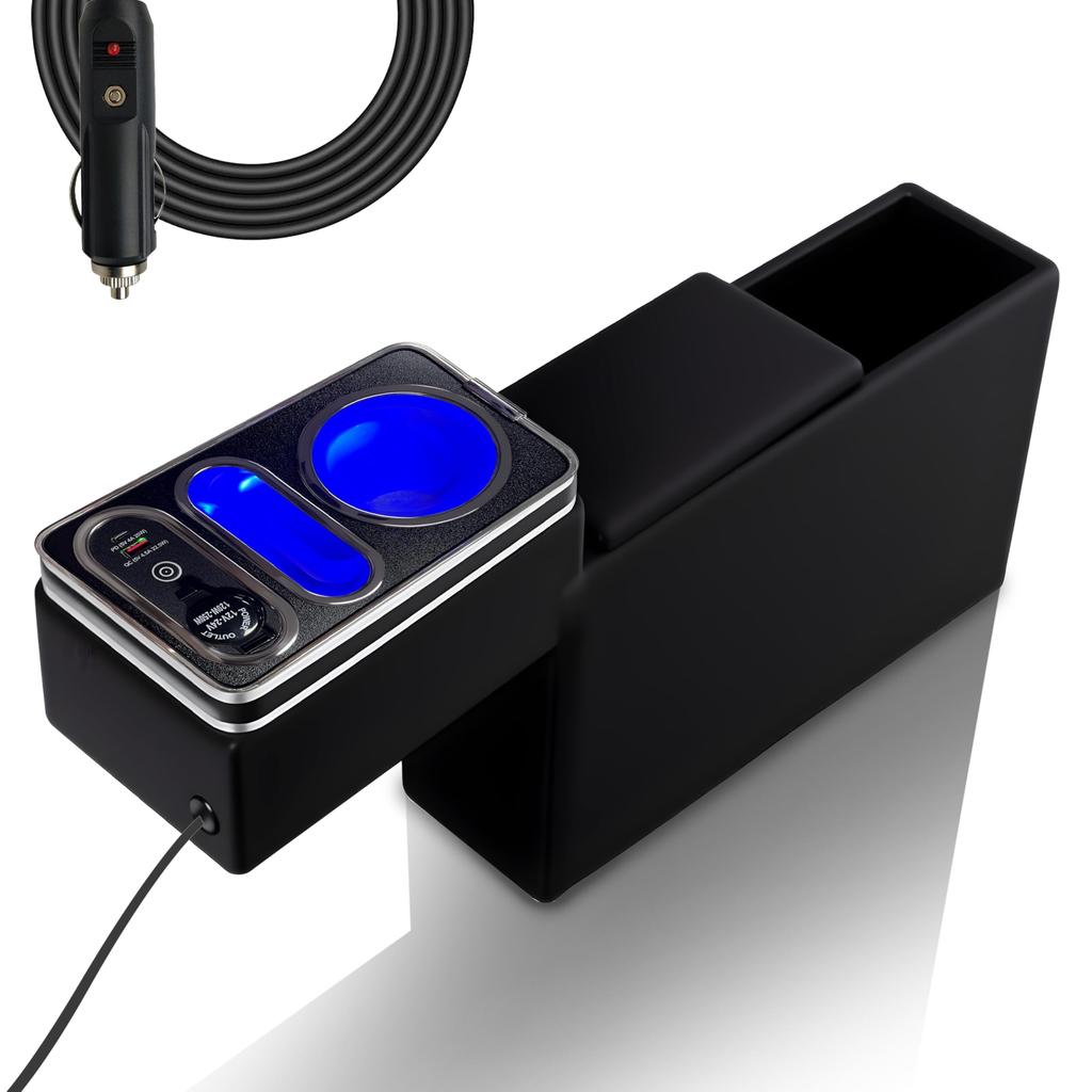 [Convenient Multifunctional Console Box for Charging] This multifunctional console box features three Type-A ports, two Type-C ports, and one cigarette lighter socket. It supports PD20W and QC3.0 (22.5W) for fast charging of smartphones and tablets, eliminating the stress of charging while driving.