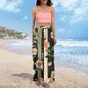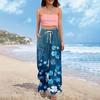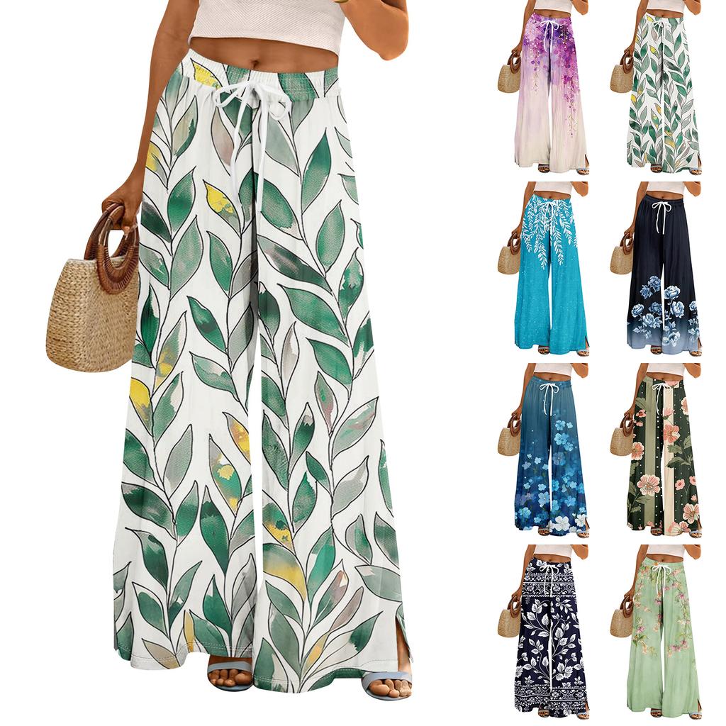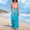 Women Summer Boho Palazzo Pants High Waist Wide Leg Floral Printing Casual Trousers With Pockets