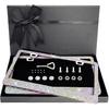 【Size Fit and Durable Quality】The size of bling license plate frame for car is 12.2""x6.3"",Deep is 0.2in,is fit all standard license plates in the U.S. Made of durable and rust-proof stainless steel,polished the surface smooth and delicate,no sharp edges ,protect your hands and have good hands feeling.The bling Plate Frame is also durable enough, never tarnish. Highly resistant to corrosion, wear, rust, scratches. 【SIMPLE INSTALLATION】 Multicolor sparkle black rhinestone license plate frame bling come with everything you need to make black bedazzled license plate frame installation quicker and easier. Get this black diamond license plate frame and say goodbye to monotonous life from now on. 【Secure and Waterproof 】This bling license plate frames use special mixed waterproof glue,to secure the rhinestones not to falling off, It will withstand car washes and weather conditions,even with intense washout and impacts still keep well. Lustrousness Will Keep Over 5 Years with Real glass rhinestones .Very easy to install with included extra-length mounting screws and can be installed in minutes without special tool required. 【BEST GIFT OPTION】Shiny funny black license plate frames covers holder pack in fancy box for Men and Women, Boys and Girls, Wife And Husband, Mom And Daughter, bling license plate especially for Valentine's Day, Birthday, Anniversary, Mother's Day, Father's Day, Thanksgiving Day, unique Christmas Gifts and New Year, attractive womens license plate frame for car plate frame is a ideal gift for any occasion or festival 【100% Satisfaction Guaranteed】:Quality Is Our Culture. Full Refund In Case Of Bad Quality. 1 Years No Reason Money-Back Guarantee And Forever FREE Replacement License Frame Service. Is Backed By 100% Guarantee And We Are So Confident That You Will Be Satisfied With Our License Plate Cover. Hope I Can Serve For You. Click And ADD TO Shopping CART, If You Have Problems Or Even Comments About Our Product,Please Do Feel Free To Contact Us.We will Be Appreciated And I Hope We Can Do Better.