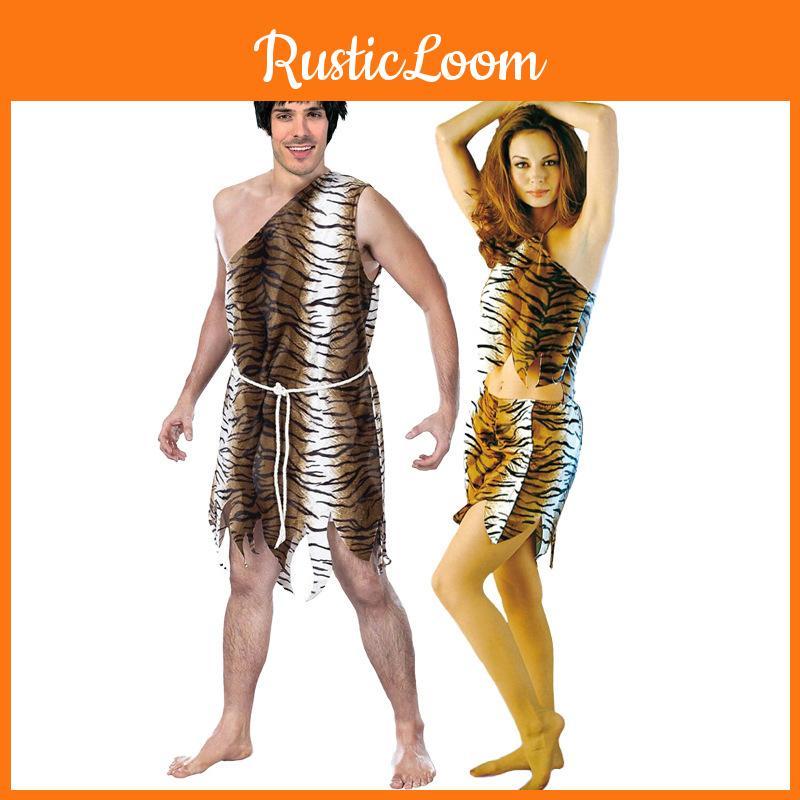 High Quality Unisex Adult Caveman Costume For Halloween With Tiger Print Design