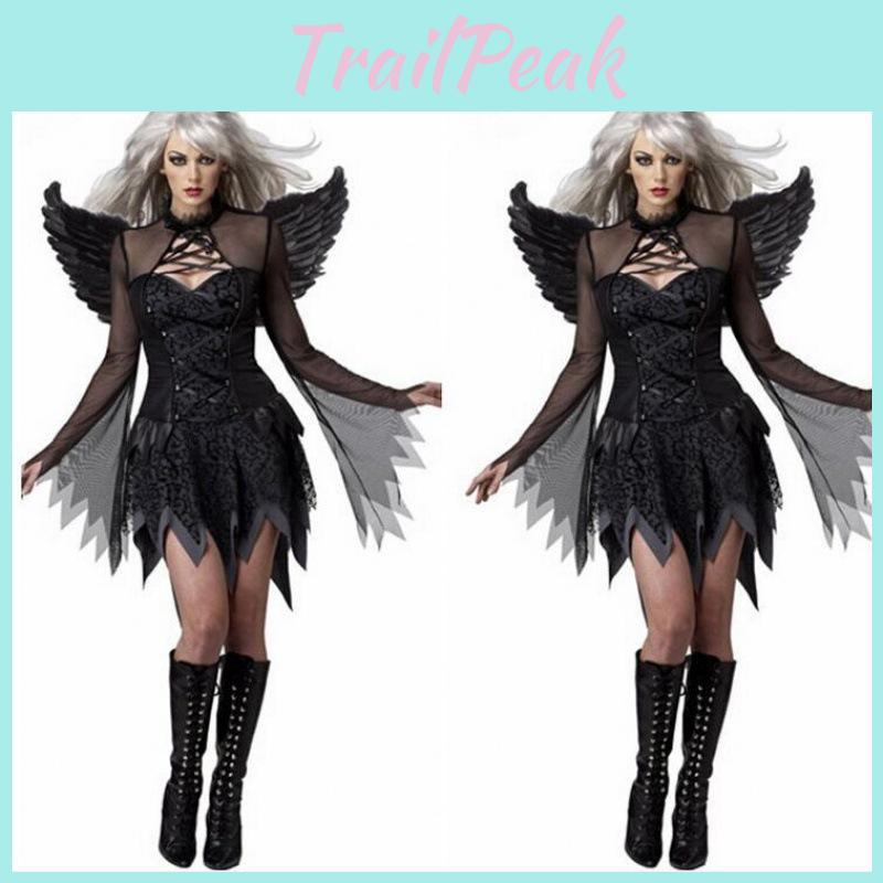 S-xxxl Women's Halloween Themed Ghost Bride Costume With Elegant Dark Angel Features