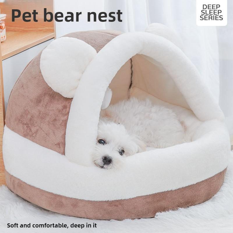 Warm Pet Bed with Plush Cute Bear Nest for Cats Dogs Thickened Winter Cat Bed Universal Four Seasons Pet House