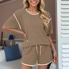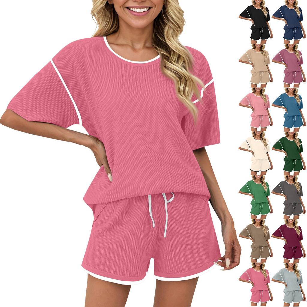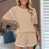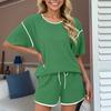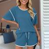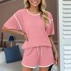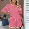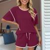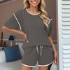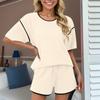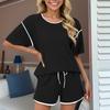 סט פיג'מה תואם לנשים, קז'ואל, 2 חלקים, חולצת שרוול קצר ומכנסיים קצרים
