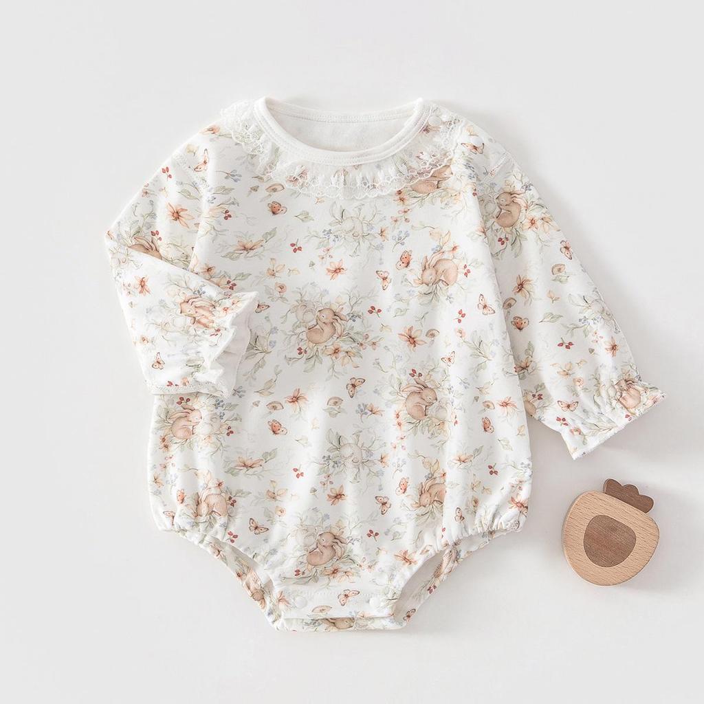 Introducing a delightful addition to your little one's wardrobe, this infant jumpsuit is crafted from soft, breathable cotton, ensuring comfort during outdoor playtime. Designed with long sleeves, it offers extra warmth on cooler days while providing ease of movement for active crawlers. The jumpsuit features a charming spring floral print, adding a touch of elegance for your baby or toddler's outdoor adventures. Perfect for capturing those picture-perfect moments, this romper blends style with practicality for everyday wear.