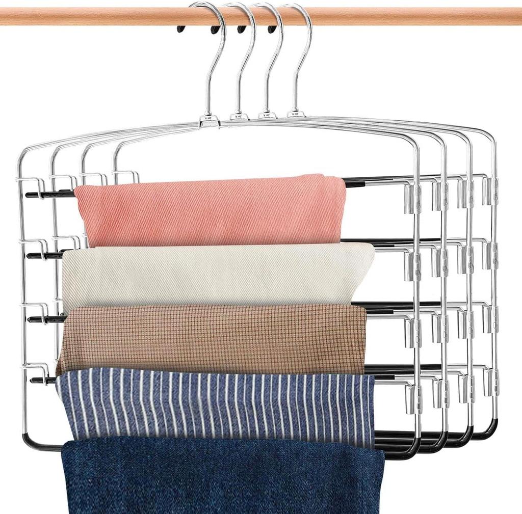 【Multifunctional Storage Hanger】This hanger can not only store trousers, but also skirts, scarves, belts, ties, towels, and more. Instead of folding your trousers, hang them up, reducing wrinkles and eliminating the need for ironing. You'll have plenty of time before heading to work in the morning.