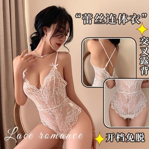 Sex Underwear Sexy Pajamas Perspective Lace Suspender onesie Open crotch Perspective Underwear Women