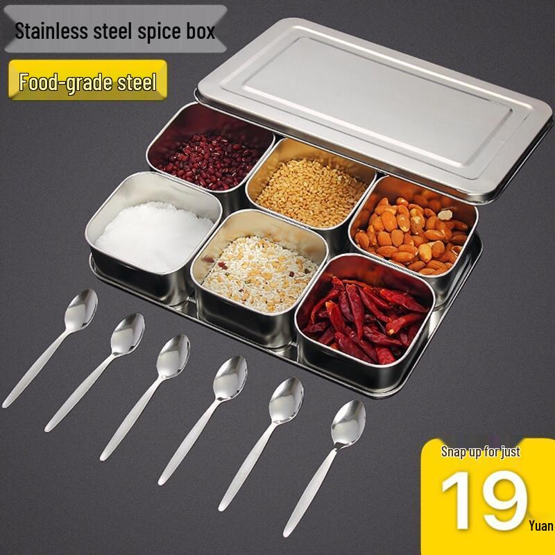 Japanese Stainless Steel Seasoning Box Set - Includes Condiment Jars with Lids
