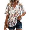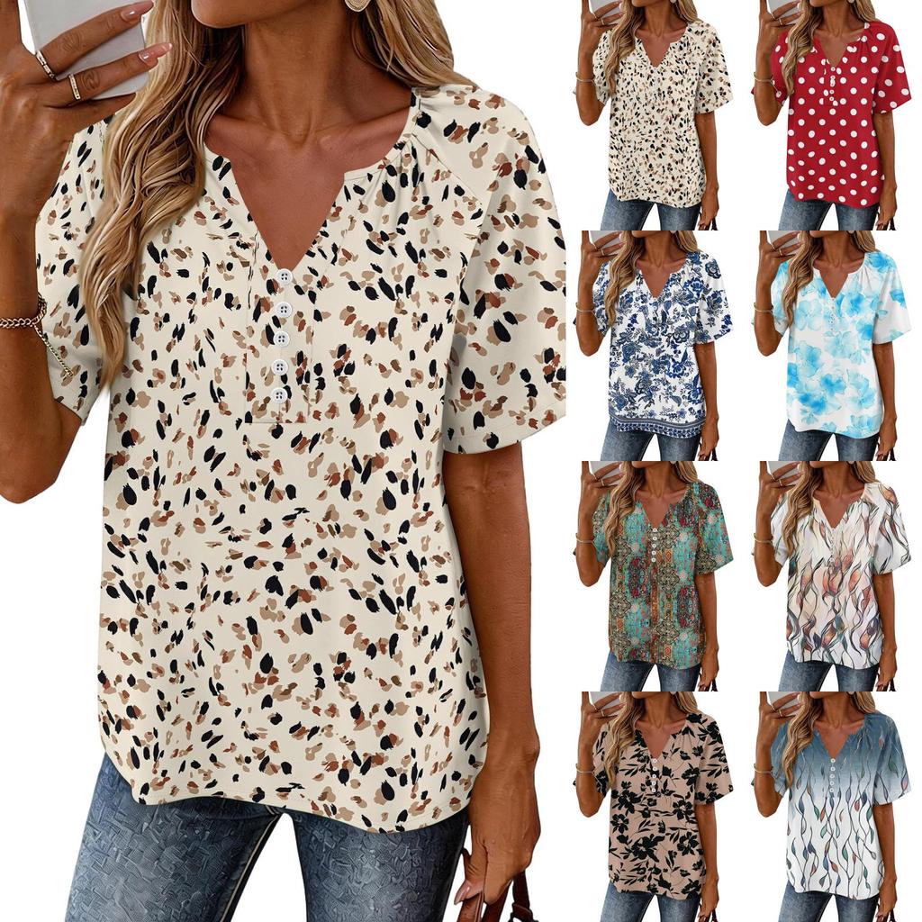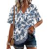 Women's Fashionable Casual Floral Print Button V-neck Short-sleeved Top