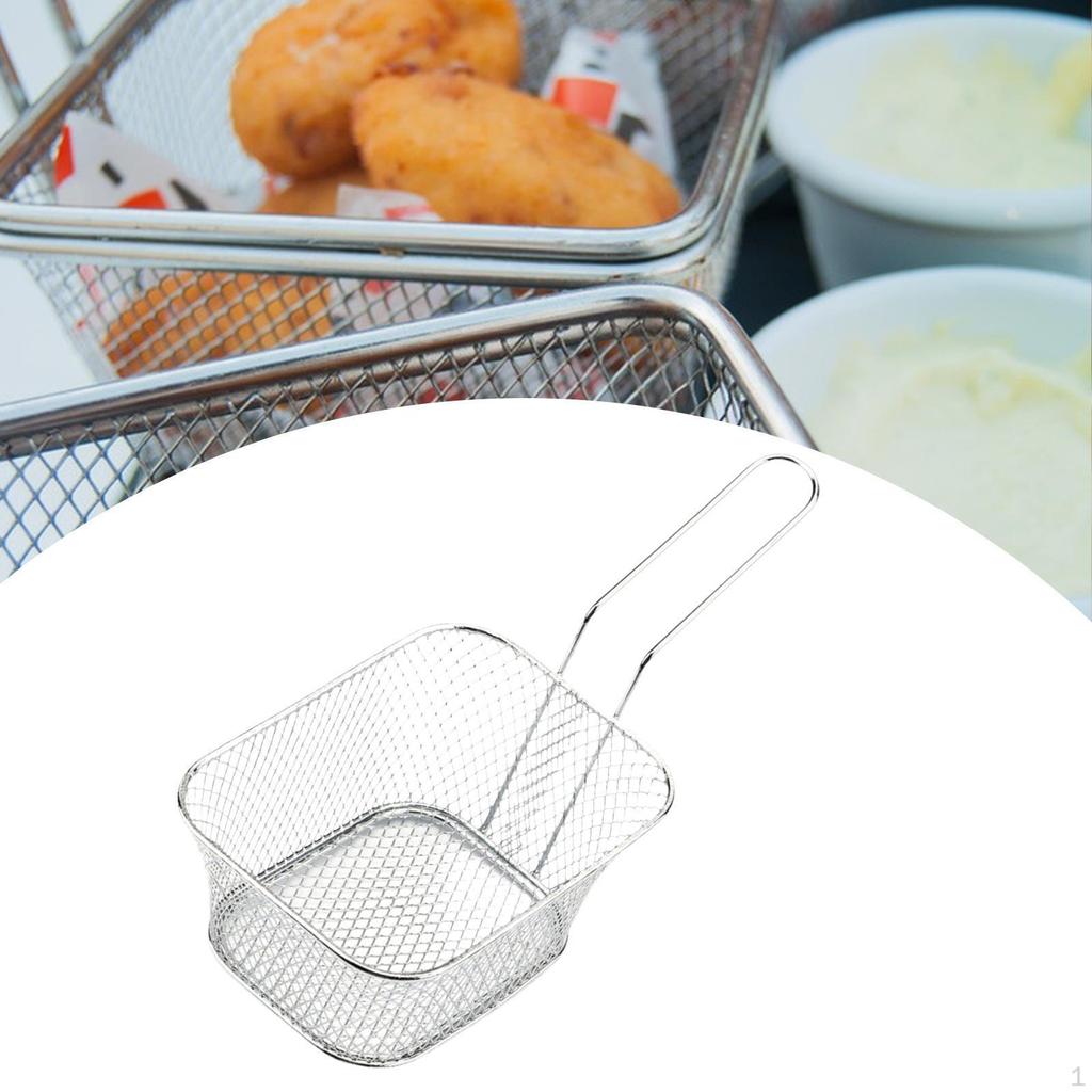 - 【Convenient Handle Design】: Frying Serving Basket features an easy to grip handle that makes it easy to remove food from hot oil. In addition, the handle can be easily hung on the wall when not in use