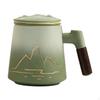 - 【Design】Glaze painting and hand painted patterns, Mountain scenery drawing, different heights, distances and nearness. Equipped with a built in filter, this mug allows for easy separation of tea leaves from your beverage, ensuring a smooth and enjoyable drink every time.