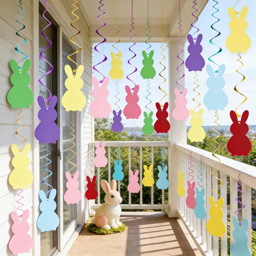 Paper Bunny Spiral Hanging Decor Colorful Party Decoration Flag Easter Celebration