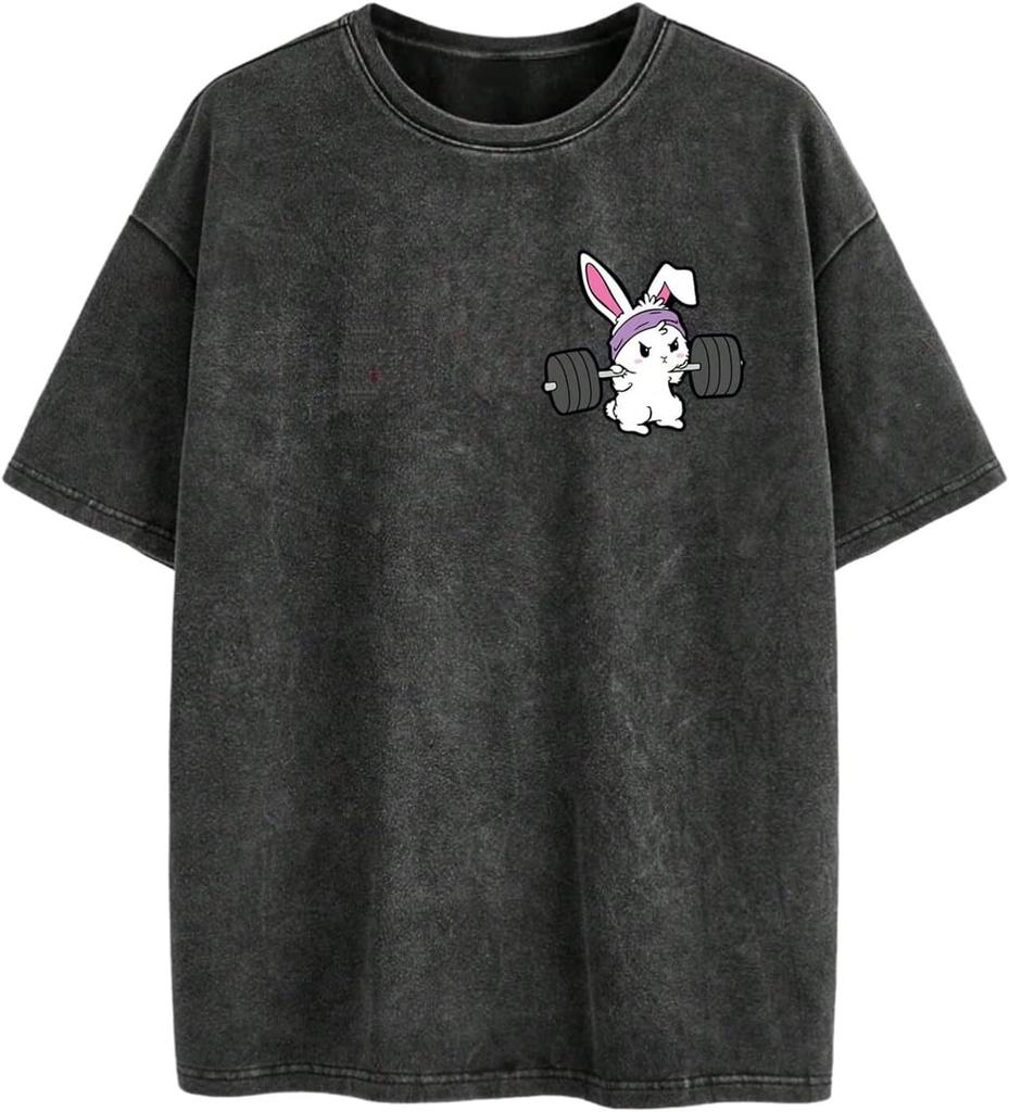Oversized Mens Graphic Tees Bat Print Vintage Shirt Streetwear Acid Wash Cotton Tshirt Baggy Y2k Short Sleeve Tops