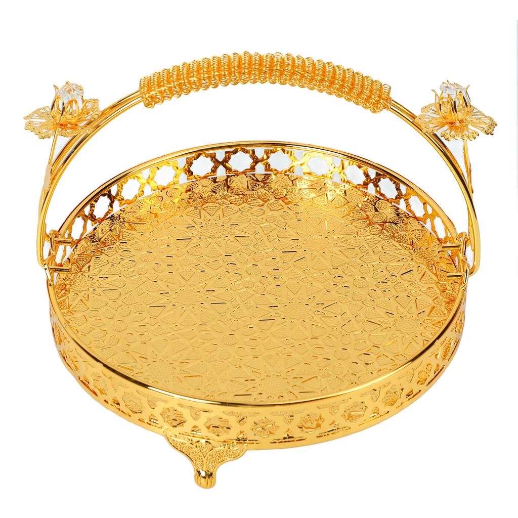 Fruit Tray Retro Round Large Capacity Handle Design Decorative Strong Alloy Fruit Bowl for Party Family Bar Cafe