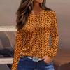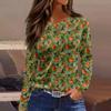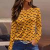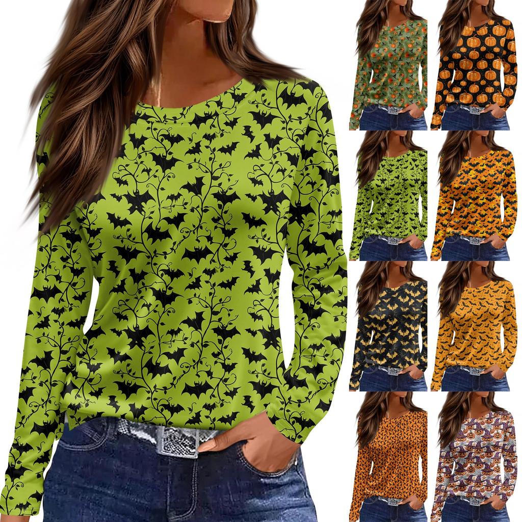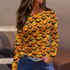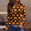 Women's Fashion Hem Slit Casual Halloween Printed Round Neck Long Sleeve Top