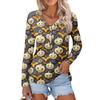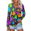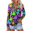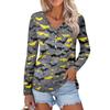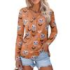 Women's Casual Fashion Sexy Comfort Halloween Printed V-Neck Button Long Sleeve