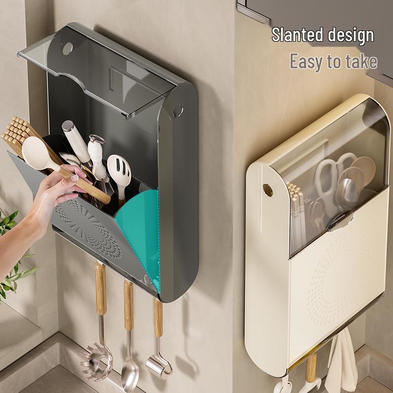 Wall-Mounted Multifunctional Chopstick Holder: Punch-Free, Dustproof Storage Rack for Chopsticks and Spoons