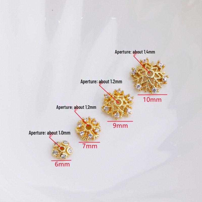 14K Gold-Plated Zirconia Flower Spacer Bead Cap for DIY Jewelry Accessory.