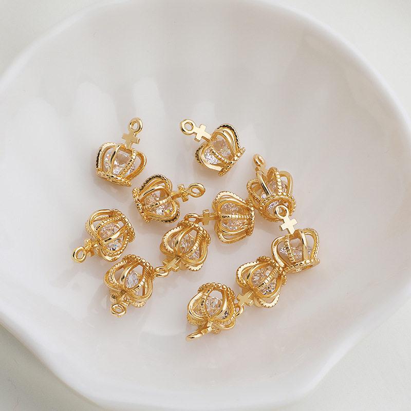 תליון צלב כתר זירקון מצופה זהב 14K להכנת תכשיטים בעבודת יד, שרשראות וצמידים