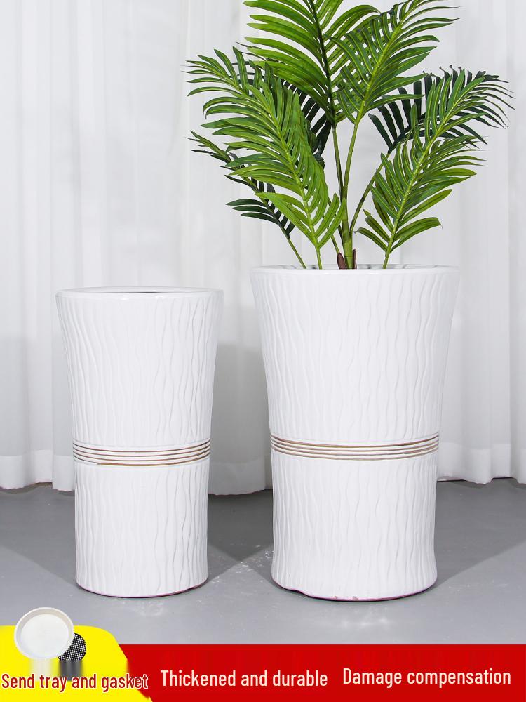 Large Ceramic Flower Pot with Tray for Indoors/Outdoors, Suitable for Succulents & Green Plants