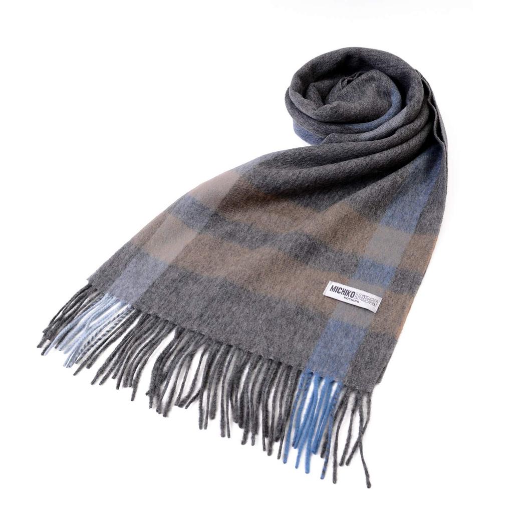 Michiko London Brand Wool Cold Check Pattern Scarf, Unisex, Weather, (Pattern A Gray)