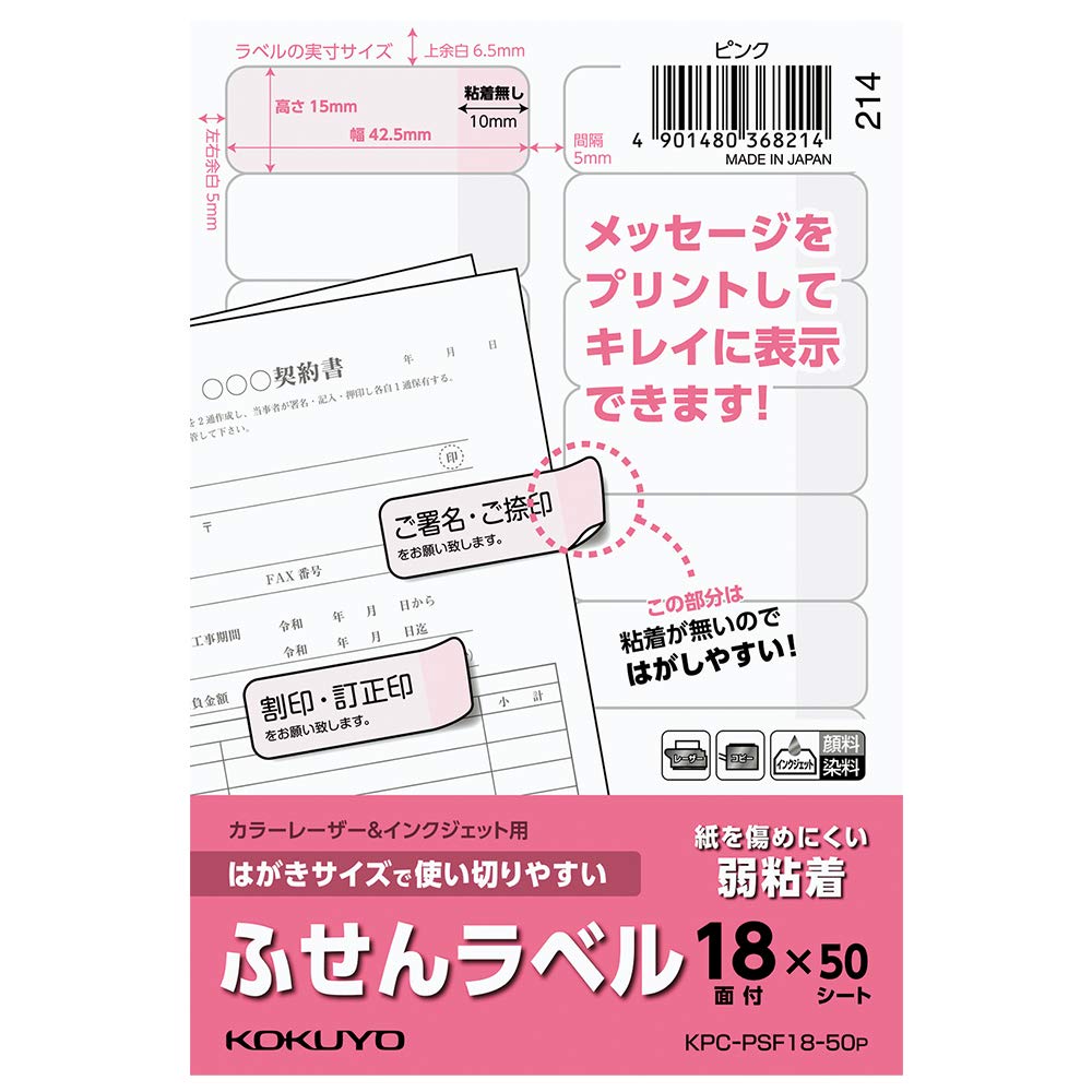 KOKUYO Sticky 18 Labels per 50 Pink Postcard-Sized Notes, Sheet, Sheets, (KPC-PSF18-50P)