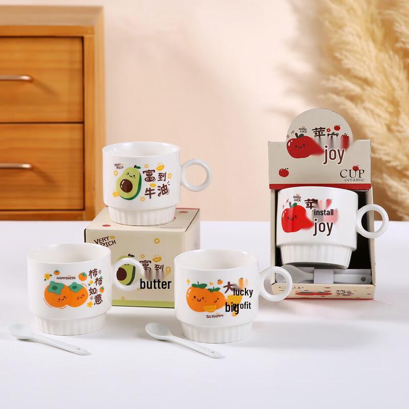Creative Ceramic Fruit Mug Gift Set with Spoon