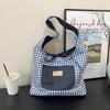 Double Sided Nyl Women's Shoulder Bags Large Capacity Plaid Ladies Tote Underarm Bag Threaded Simple Bow Casual Female Handbag