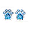 Silver Color Cat Paw Hoop Earrings Light Blue Heart Shape Round Crystal Stone Cute Girls Earrings Blue Zircon Party Hoops