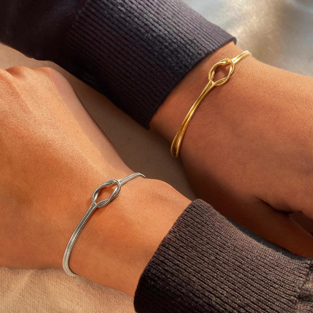2Pcs Fashion Stainless Steel Couple Bracelet for Women Men Simple Knot Snake Chain Adjustable Bracelets Unisex Jewelry Gifts