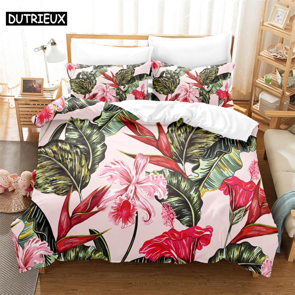 Comforter 3D Digital Printing Fashion Design Queen Size Cartoon Beautiful Flower Bedding Set