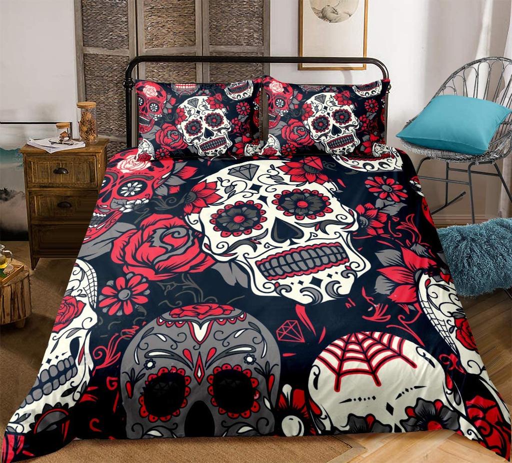 Comforter Sugar Skull Bedding Comforter Set Gothic Twin/Full/Queen/King Set 3 Pieces Soft