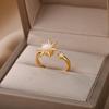 Personality Design Rotatable Sunflower Opal Decompression Rings for Women Luxury Gold Color Stainless Steel Finger Jewelry Gift