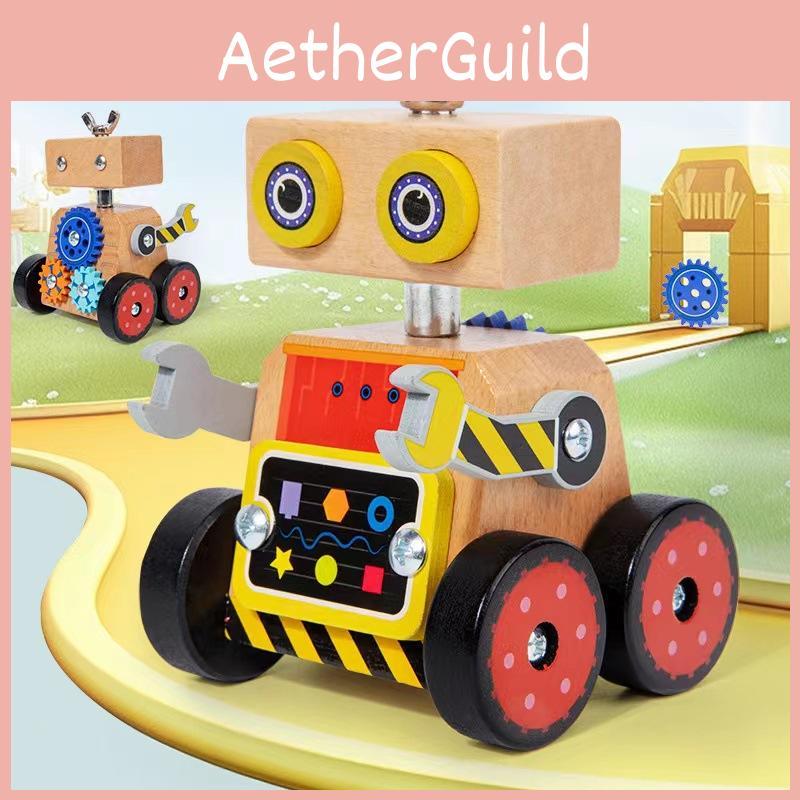 Wooden Ball Puzzle And Small Car Assembly Robot Toy For Kids With Color Matching And Diy Playtime