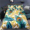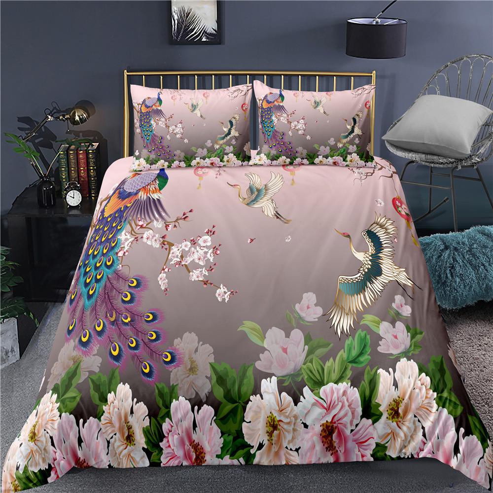 Comforter Peacock Plum Blossom Decor Bedding Set King Size Crane Peacock Feather Floral Pattern Romantic