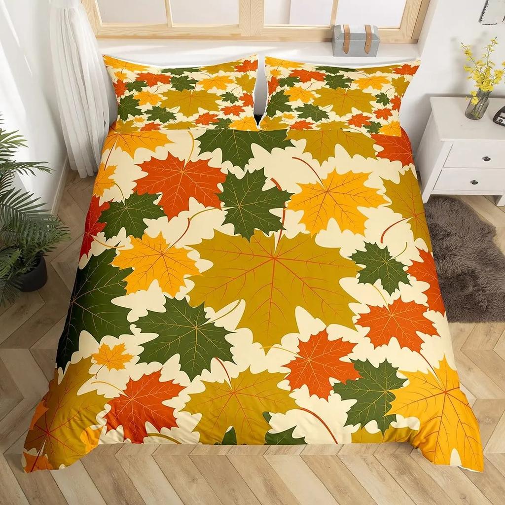 Comforter Maple Leaf Twin King Botanical Leaves Bedding Set Autumn Plant Fallen Leaves Comforter For Boys Girls Room
