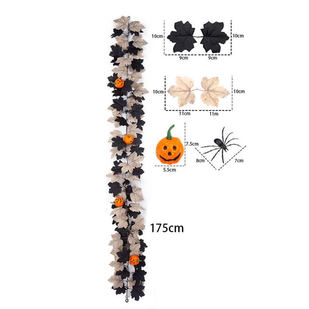 Black Halloween artificial foliage leaf garland 175cm wallmounted plastic indoor autumn fall and Thanksgiving decoration