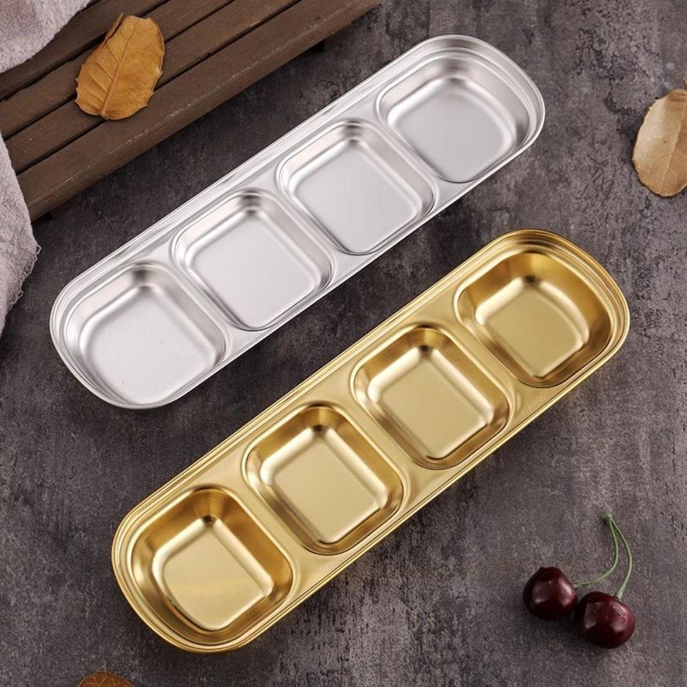 2Pcs 2/3/4 Grid Seasoning Dish Stainless Steel Sauce Plate Restaurant Use