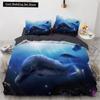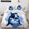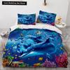 Comforter Dolphin Ocean King Queen Cute 3D Sea Animal Bedding Set For Kids Teens Adults Shoal Of Fish Blue 2/3Pcs