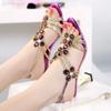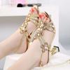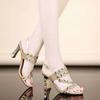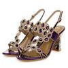 סנדלי עקב גבוה לנשים נעלי קיץ נעלי מסיבה אופנה עקב בינוני טמפרמנט אבני חן עקב מרובע סנדלי פנאי