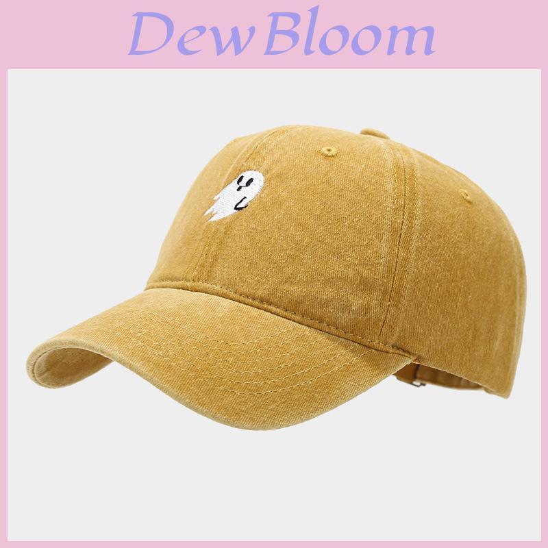 Ghost Embroidered Denim Baseball Cap With Sun Protection For Casual Outdoor Wear