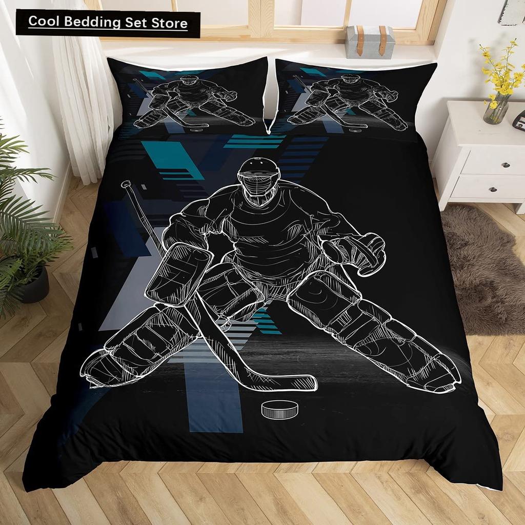 Comforter Ice Hockey Puck Hockey Player Winter Event Bedding Set Boys Sports Game Black Polyester Comforter