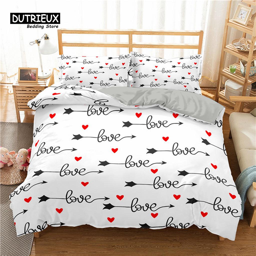 Comforter Love Heart Bedding Set Love Words Polyester Romantic Crown Print Full King For Girl Boy