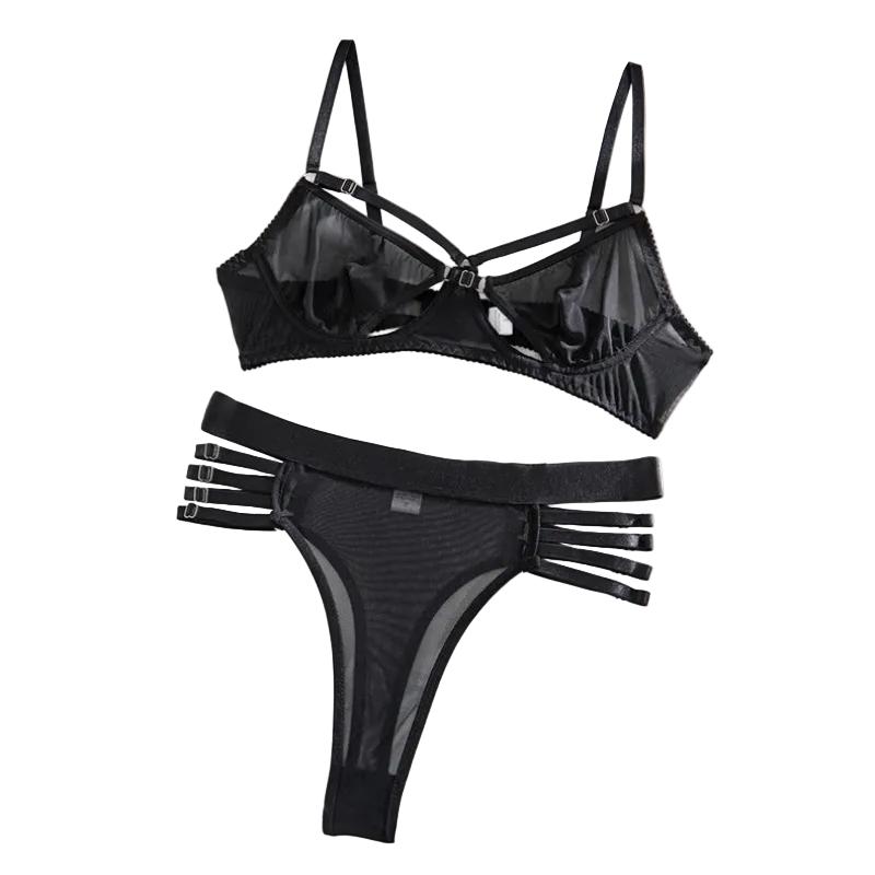 Transparent Mesh Non Wired Motorcycle Lingerie Set Underwear