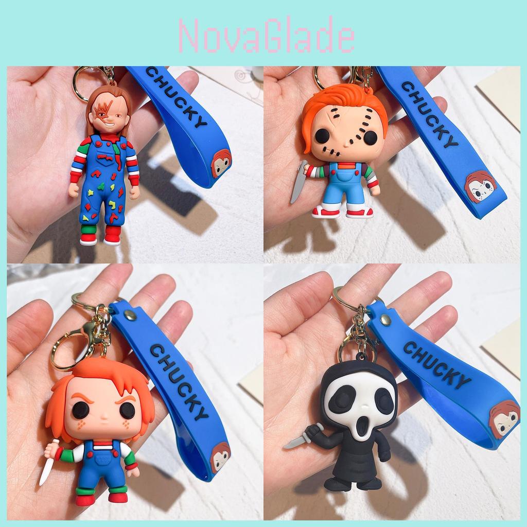 Scary Series Killer Doll Keychain Halloween Themed Silicone Keyring For Birthdays