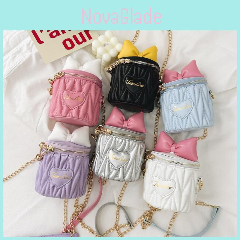 Kids Butterfly Bow Diamond Chain Mini Bag Girls Summer New Fashion Crossbody Bag Cute Bucket Bag