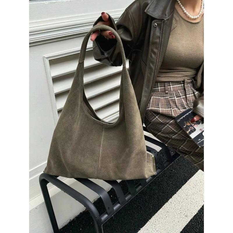 Frosted Cowhide Large Bag Autumn Winter Single Shoulder Tote Underarm High Capacity Casual Crossbody Bag for Women